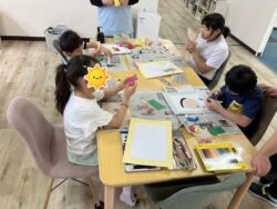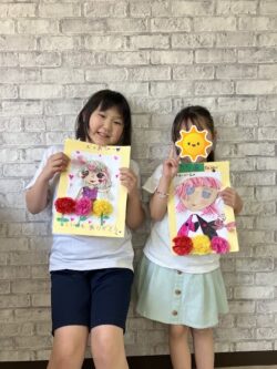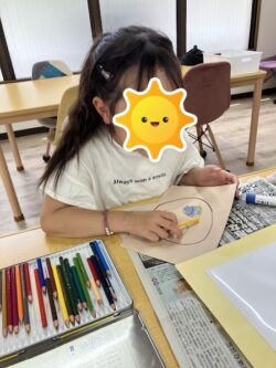 女の子は自分で考えて、お母さんの顔を描きます😊