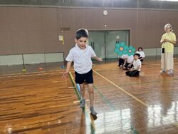 いつもより広く使えたので、障害の種目が多かったですが、子どもたちも真剣に取り組んでいました。