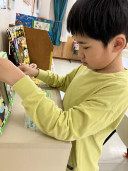 2階のグループは絵本や図鑑を読んだり