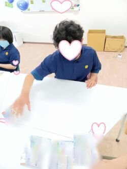 枠に合わせて、慎重に🤗ペタっと!お上手です💓