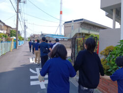 最後は避難指定場所の「しびらき小学校」に全員で避難経路を確認しながら向かいます。
