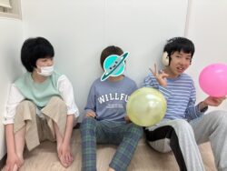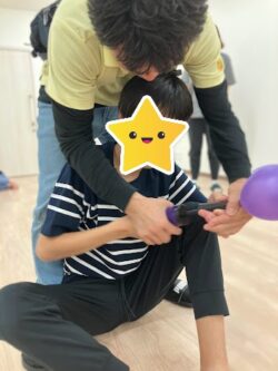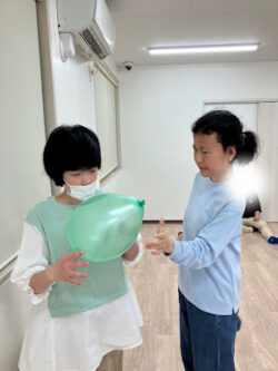 一人ずつスタッフと一緒に風船を膨らましていきます💪