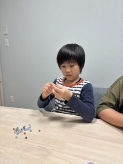 きらきらのビーズを通したり✨