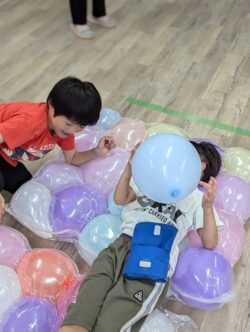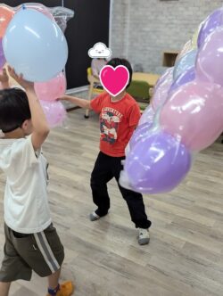 風船1つでも、子供達の手にかかればいろんな遊び方ができるのでそばで見ているスタッフは驚きの連続😀