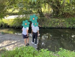 飛ばしつかれたお友達は近くの池で生き物探しをしていました(^-^;
