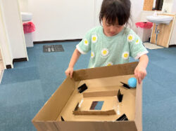 箱の中に入ったボールを、穴の開いたところまで上下左右に動かしながら運んでいきます。