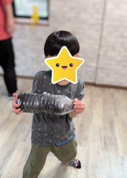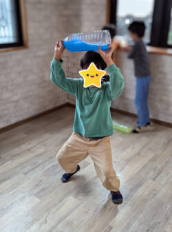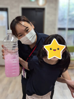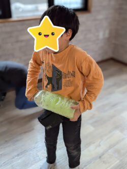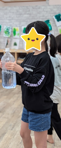 ペットボトルに水と絵の具とボンドを入れて~