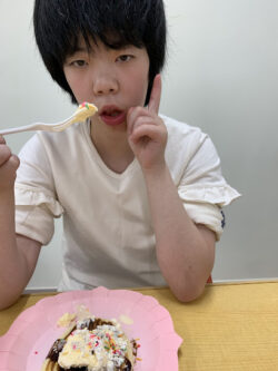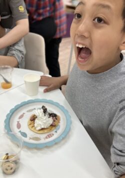 自分たちで作ったホットケーキは格別においしいね😍