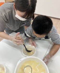 今回は、お買い物係・生地作り係・生地絞り係の3つの係に分かれて協力して作りました!