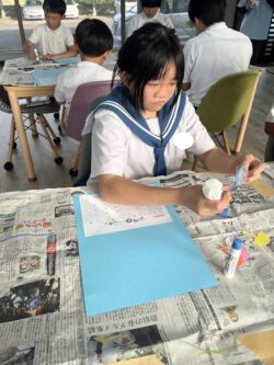 「てるてる坊主にっこりさせよ~」と顔を書いていました😊
