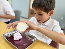 エンジェルグレーという粘土みたいなものに色水を混ぜます!