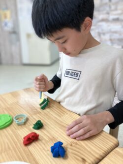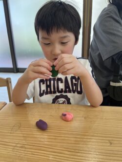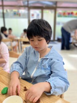 型抜き・おもちゃの調理道具を使ってみたり、想像力豊かにオリジナルで色んな形にしてみたりと楽しんで取り組めている様子が見れました。