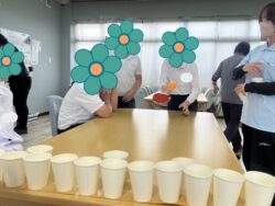 1人10球投げてボールが何個紙コップに入るかを競いました!