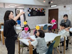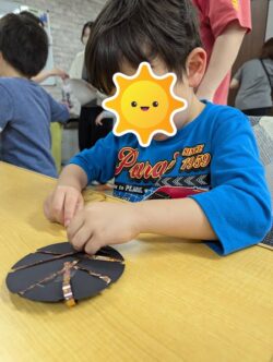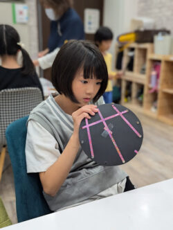 丸いホログラムのシールを貼って、花火を再現した作品作りを行いました~🎶