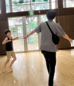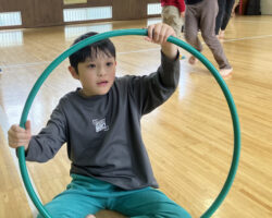 また他のお子様はフラフープを掴んでグルグル回ったり、
