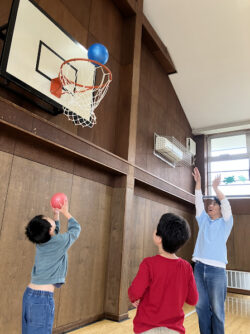 鬼ごっこや、バスケットゴールのシュート練習など、