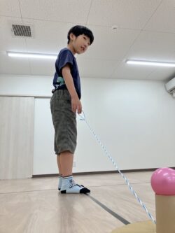 床のテープに沿ってまっすぐひもを引っぱっていきます👌