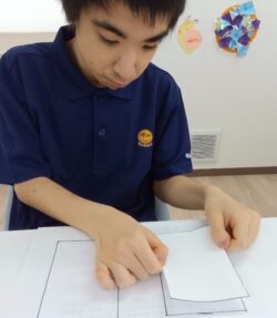 折り紙でお弁当作り。まずはおかずなどを制作、たこさん🐙ウインナーでしょうか?