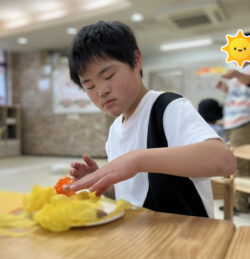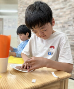 巧緻性ということで、様々な指先の動きを使って制作物を作成しました。