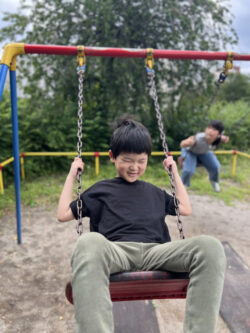 1人はブランコに夢中!別のお子様はあちこちの遊具を遊覧しています!(^^)!