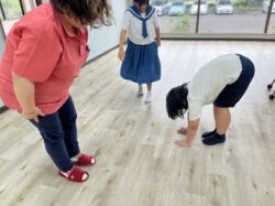 「体やわらかいんだよ~」とスタッフに見せてくれました😊