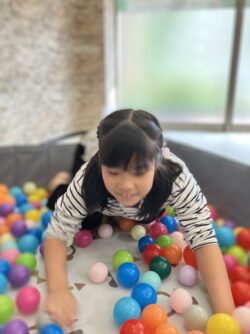 午後にはバウンサーで体を動かしたり、ボールプールでリラックスをして過ごしました。