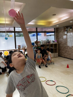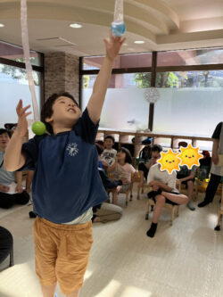宙にぶら下げられたボールに手が届くかチャレンジ!
