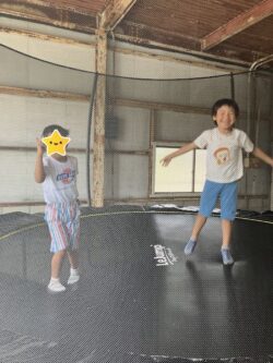 トランポリン、高く跳んで楽しいね👣😊