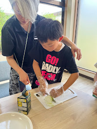 公園から帰ってきてから、先日りっと菜園で収穫した野菜を調理しました。