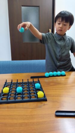 ⑤おたのしみでは、課題の最後として好きな遊びを選んでもらったり、スタッフと勝負課題を行ったりします。