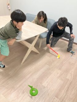 風船バレーやエアホッケー、ゴルフ等々を行い、「負けちゃっても次頑張ろう!」と負けを受け入れられることを練習しています。