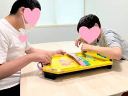 他にも「お友だちを意識しながら活動する」ことを目標に、パズルや聞く課題をお友だちと一緒に取り組むこともあります。