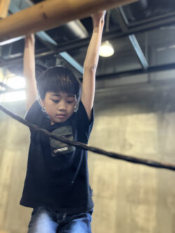 綱渡り、揺れる橋、ボルダリングやトランポリンなど色んな種目があったり、