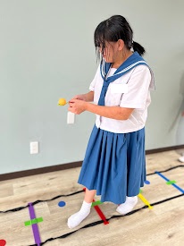 ③バランスストーンを渡って、その後は赤と青の印を踏みながら次の人にバトンタッチしてゴール!
