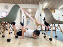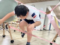 ひもくぐりは、椅子と椅子をひもでつないで、その間をくぐったり、跳んだりします😊