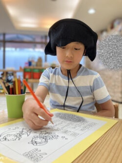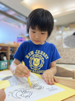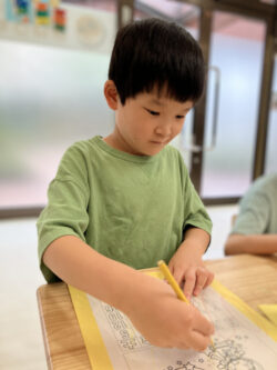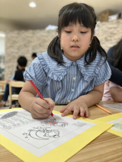 見本通りに塗るお子様、お気に入りの色鉛筆でなぐり描きを楽しむお子様などなど、