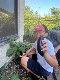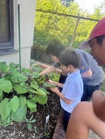課題後は、みんなお楽しみのリット菜園にてナスビの収穫をしました✨