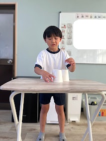 どの紙コップに球が入っているか、みんな集中して見てましたよ👏