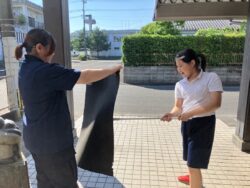 スタッフと一緒に玄関マットのお掃除まで✨