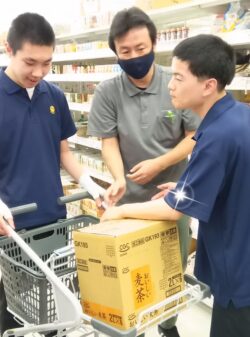 買い物班は皆さんのドリンクやお米など。重い物も協力してお買い物。