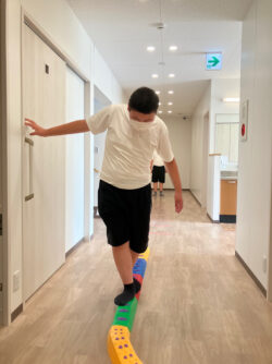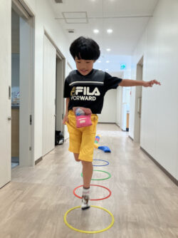 バランスを保ちながら片足でジャンプをして進んでいます👣