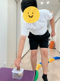 リッツパーティーにちなんで、玩具のクッキーを落とさないように運んでいます!!