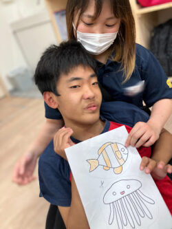 とってもよくがんばったね!!おさかなさんとパシャ📸✨