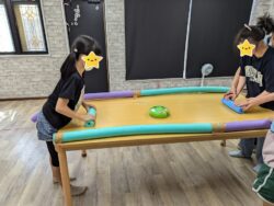 今日のレクはエアーホッケーと輪通しの2本立てでした👍