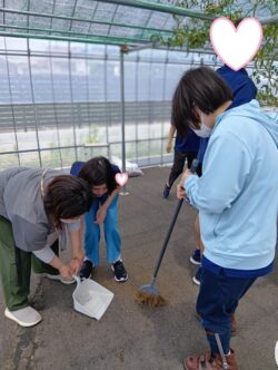 ハウス内の掃除も一所懸命な利用者さんたちです😄