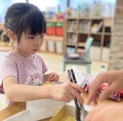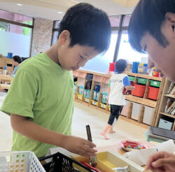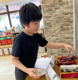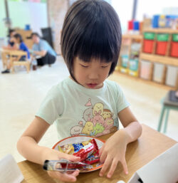 さらに、おやつを取ってもらうのに、トングもしくはお箸を選んで取ってもらいます。