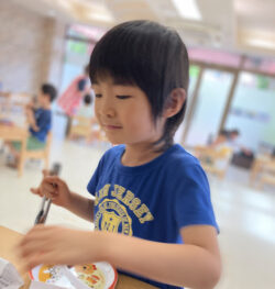 スタッフも所どころ補助しながら、皆さん、上手に自分オリジナルのお菓子プレートを作ることができております!