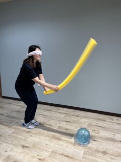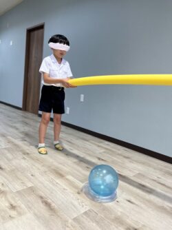 本物のスイカは用意できませんが、柔らかいボールをスイカに見立てて
