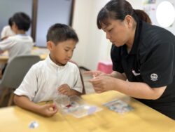 次にビーズを入れて、縦にしたり横にしたりして波の音を感じました👂