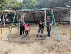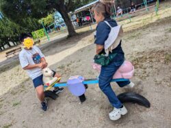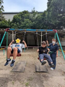 スプリング遊具で揺れてみたり、